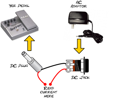 You can measure current draw on pedals without batteries also--it is just a bit more work. Use some wire, a DC jack and a DC plug. Like this: