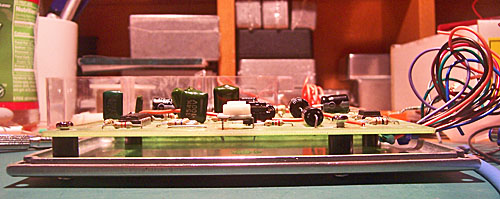 After the plan was mapped out, I de-soldered the three pots from the board, trimmed back the long leads, and attached wire bundles to each of the pot lugs.