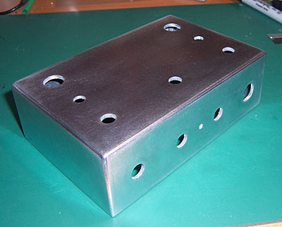 Before putting the enclosure aside, I spent an hour or so wet-sanding it (150, 400, 800, 1500, and then 2000 grit sandpaper) and polishing it. Turned out very nice and shiny: