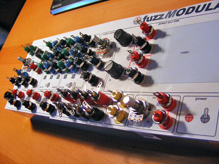 Then with the addition of some banana plugs, I could patch together the basic fuzz face, or try different variations in real time.
