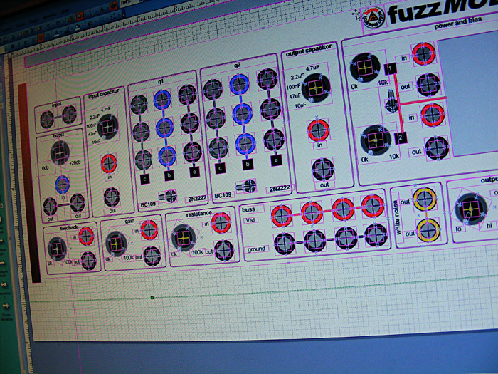 If you are like me, you have probably built a lot of fuzz face derivatives. I've built a bunch and dallied around the breadboard with all sorts of fuzz face mutations, some interesting, some just downright bad. After all these experiments (and playing around with modular designs in the still-unfinished Armageddon Processor), I decided to meld the two ideas: fuzz face + modular. The idea being, if I could use patch cables to rearrange the guts of a fuzz face, I would end up with a truly worthless piece of unique gear. Sounds like the perfect ingredients for a beavis creation.