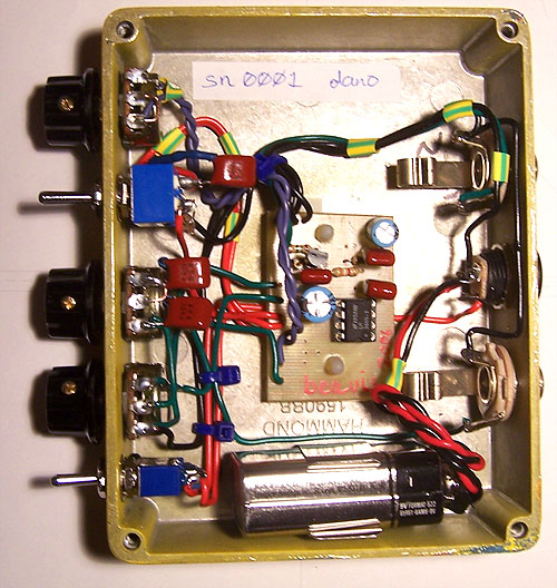 Here's the first prototype build of the Noisy Cricket with the just the Grit boost switch: (This pedal is now in the collection of Richard Guy at www.guytronix.com super nice guy and awesome amp kits!)