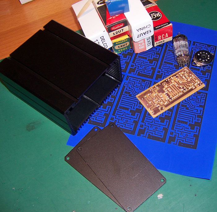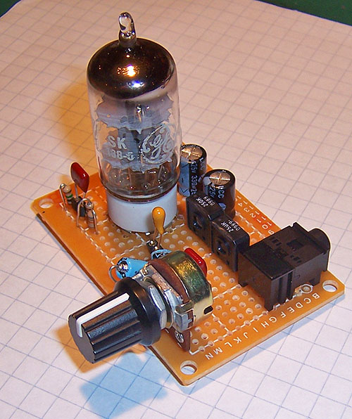 The Tube Cricket is a low voltage (12vDC) amplifier using a single 12AU7 tube for the preamp stage and an LM386 power amp for the power stage.